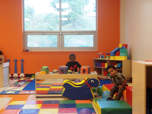 The Leaguers Building consists of two floors on top of a below grade parking garage. The main entrance is accessed from a raised plinth above the parking. This entrance allows access to a very large main lobby, a large multipurpose room, an outdoor terrace, and the executive offices of the Leaguers which are located on the upper floor. The second entrance is the main entrance to the Headstart Center, which accommodates 14 classrooms over two floors, including administrative offices, kitchen, outdoor playground, and support spaces.