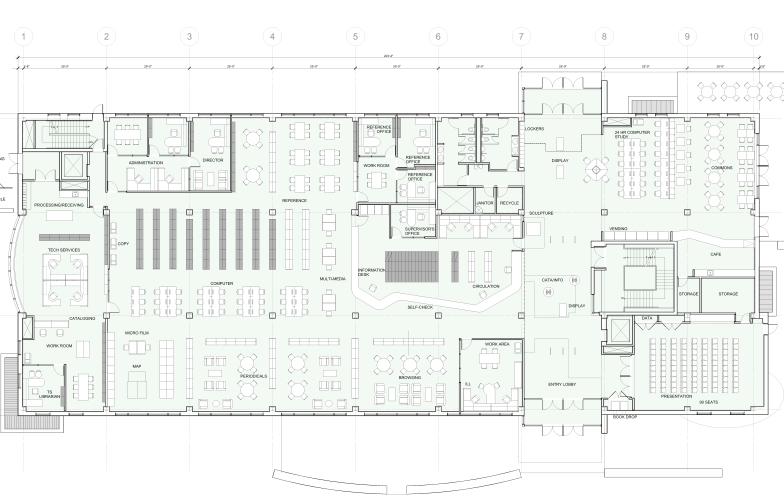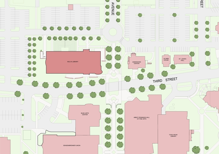 The 80,000-square-foot library takes advantage of a prestigious central gateway location to anchor future development, advancing the College’s goal of establishing a “town & gown” zone as it expands west of 3rd Street. The design creates an active place that enlivens this transitional area and enhances St. Norbert’s competitive standing, an important measure of academic quality for prospective students and faculty.